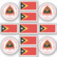 Vier Aufkleber mit dem Wappen Osttimors und sieben Aufkleber mit der osttimorischen Flagge in der Mitte
