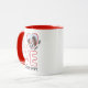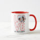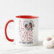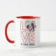 Diese Tasse "Liebe beim ersten Schwimmen" enthält benutzerdefinierte Zinnpaar-Namen und Foto. Ideal für Paare, die sich online treffen.