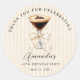 She’s a Tini Bit Older Espresso Martini Birthday Thank You Sticker | Elegant Ivory Stripe with Coquette Bow | Classic Round Martini Theme Sticker
