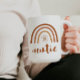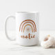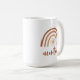Diese Keramik Tasse ist mit einem böhmisch verbrannten orangen Terrakotta-Regenbogen mit Sonneneinstrahlung im Inneren und dem Wort "Tante" in einem handgeschriebenen Pinsel-Schriftart versehen. Diese Kaffeetasse ist der perfekte Weg, um ein neues Baby in der Familie anzukündigen und ist ein tolles Geschenk für Ihre Lieblingssante. 💜 FARBEN SIND GEEIGNET! Klicken Sie auf 'Design bearbeiten', um die Farben zu ändern.