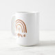 Diese Keramik Tasse ist mit einem böhmisch verbrannten orangen Terrakotta-Regenbogen mit Sonneneinstrahlung im Inneren und dem Wort "Mama" in einem handgeschriebenen Pinsel-Schriftart versehen. Diese Kaffeetasse macht das perfekte Muttertagsgeschenk für deine Lieblingsmutter da draußen. Es ist auch eine gute Möglichkeit, eine Schwangerschaft anzukündigen oder als Geschenk an einer Babydusche zu geben. 💜 FARBEN SIND GEEIGNET! Klicken Sie auf 'Design bearbeiten', um die Farben zu ändern.