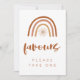 Dieses bedruckbare Gefälligkeitsschild mit einem böhmisch verbrannten orangen Terrakotta-Regenbogen mit einer Sonne in der Mitte und einem niedlichen handgeschriebenen Schriftart. Bearbeiten Sie die meisten Formulierungen, um den Anforderungen Ihrer Veranstaltung gerecht zu werden. 💜 FARBEN SIND GEEIGNET! Klicken Sie auf 'Design bearbeiten', um die Farben für Ihr Party zu ändern.