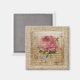 Ein Vintager, blumengeschmückter gerahmter Kunstdruck in Miniatur auf einem Magneten. Grosses staubrosa Rosa Blume-Cluster vor dem Hintergrund von antikem Schreibpapier. Es gibt 5 weitere Bilder aus dieser Serie zu wählen. Sammle das Set. Erstellt mit Kunstwerken von Cajoline und Lilach Oren.