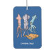Drei niedliche Tintenfisch Cartoon und ein Triton Meer Muschel. Benutzerdefinierte Hintergrundfarbe. Benutzerdefinierter Text auf beiden Seiten.