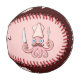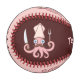 Rosa Tintenfisch Koch Cartoon mit Schnurrbart und Kochgabel. Benutzerdefinierte Hintergrundfarbe. Benutzerdefinierter Text auf beiden Seiten.