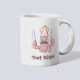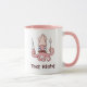 Rosa Tintenfisch Koch Cartoon mit Schnurrbart und Kochgabel. Benutzerdefinierter Text auf beiden Seiten.