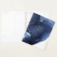 Ein abstrakter Hintergrund, der an eine flüssige Tinte in den Farben von tiefblau, blau, zyanisch und weiß erinnert, ist der Hintergrund für elegante handgeschriebene Skripttexte und moderne Design-Layouts in den Teilen dieser wunderschönen Hochzeitssuite. Der hier gezeigte Hochzeitsplaner weist den obigen Hintergrund mit einem Label auf, das Ihren Namen und einen Titel für Ihr Buch enthält. Durchsuchen Sie ID762 um alle Koordinaten in diesem Set zu sehen.
