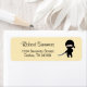 Happy Cartoon Ninja in schwarz gekleidet mit dem Arm erhöht in winkeln. Traditionelles japanisches Schwert Katana kann man an seiner Schulter sehen.