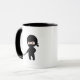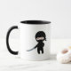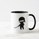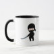 Niedlicher, aber wütender Cartoon Ninja in schwarz gekleidet hält ein traditionelles japanisches Katana Schwert.