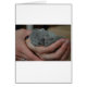 Winziges Baby Blue Kitten, das in Händen gekrackt wird.