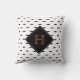 Ein tolles Halloween-Kissen in Schwarz, Weiß und Orange mit einem nahtlosen Muster aus winzigen Fledermäusen und einem Monogramm in Diamantform.