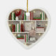 Please note: This is a 2D flat printed graphic print, printed onto an ornament. // - // tiny book shelf shelves, love to read books, christmas red green bookshelf,heart shaped pretty bookshelves, i love to read,reading love reader,holiday avid story lover,collecting xmas stories series,white pet white cat, "for women girls her"