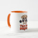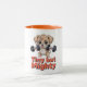 Cartoon puppy with dumbbells and bold orange text—playful fitness flair for kids and pet lovers.