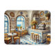 Perfektes Geschenk für den Reise- und Kaffeeliebhaber. Die Aquarellmalerei bezeugt den ruhigen Charme eines kleinen Cafés in Santorin. Die weiß gekalkten Wände mit blauen Akzenten spiegeln die typisch kykladische Ästhetik wider, während kleine Holztische mit Korbstühlen eine einladende Atmosphäre schaffen. Jeder Tisch ist mit einer einfachen Vase aus frischen Blume geschmückt, die eine elegante Touch verleiht. An einer Theke aus weißem Stein befinden sich eine traditionelle griechische Kaffeekanne und Gebäck, während ein Barista in einem Shirt mit Leinen Kaffee von einer Vintagen Espressomaschine serviert. An den Wänden hängen kleine gerahmte Bilder des Ägäischen Meeres und rustikale Regale mit Keramiken und Kräutergläsern. Das sanfte Sonnenlicht strömt durch gewölbte Fenster, das auf dem gefliesten Boden aufwändige Muster ausstrahlt und einen Blick auf das strahlend blaue Meer dahinter bietet. Das Gemälde vermittelt wunderbar das ruhige und malerische Wesen eines Santorini-Cafés.