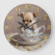 Tiny Delight: Chihuahua Puppy in einem Teacup Große Wanduhr