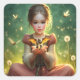 Tiny Dragon Keeper mit Schmetterlingen Quadratischer Aufkleber