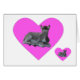 Niedliches, graues Eselfoal, das in einem großen rosa Herz liegt, das Bild wird wiederholt. Die Karte ist leer für Ihre eigene Nachricht.