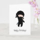 Happy Cartoon Ninja in schwarz gekleidet mit dem Arm erhöht in winkeln. Traditionelles japanisches Schwert Katana kann man an seiner Schulter sehen.