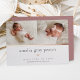Die süße und elegante Geburtsankündigung zeigt zwei neu geborene Fotos, die nebeneinander angeordnet sind, darunter eine goldene Rose. Personalisieren Sie sich mit dem Namen des Babys, der Geburtsstatistik und einer Familienbotschaft, die mit einer kleinen Rose goldenen Folienhülle geschmückt ist.