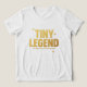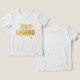 A bold typographic design featuring the phrase “TINY LEGEND” in all caps, glowing with a golden gradient and surrounded by sparkles. Clean, centered, and perfect for youth apparel, POD merchandise, and minimalist baby fashion. Sized at 4500×5400 pixels with 300dpi resolution and transparent background.