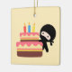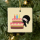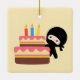 Tiny Ninja Behind Birthday Cake on Yellow Keramikornament