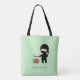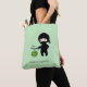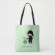 Adorable Cartoon Ninja ist das Schneiden einer Wassermelone so schnell, alles, was Sie sehen können, ist ein kleines Zwitschern seines Katana Schwert. Die Vorderseite der Tasche zeigt die Ninja, die über einer Wassermelone aufgestellt wurde. Der Text lautet: "Ninjas sind super schnell!" Die Rückseite zeigt die Ninja mit der bereits zerschnittenen Wassermelone. Der Text lautet "Du blinkst, du vermisst es!"