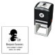 Cute cartoon black-dressed ninja is sitting cross-legged concentrated on folding pieces of paper into origami ninja stars. Traditional Japanese sword katana can be seen attached over his shoulder. Personalize with your own name and address.