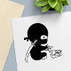 Niedlicher Cartoon schwarz gekleidete Ninja sitzt querbeinige, geschäftige Papierstücke in Origami-Ninja-Sterne. Traditionelles japanisches Schwert Katana kann man an seiner Schulter sehen.