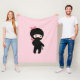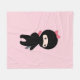 Niedliche Cartoon Ninja Mädchen ist ganz in Schwarz gekleidet, aber für einen rosa Bogen auf ihrer Kopfmaske. Traditionelles japanisches Schwert Katana kann man an ihrer Schulter sehen, es ist Griff auch rosa gefärbt.