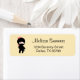 Niedliche Cartoon Ninja Mädchen ist ganz in Schwarz gekleidet, aber für einen rosa Bogen auf ihrer Kopfmaske. Traditionelles japanisches Schwert Katana kann man an ihrer Schulter sehen, es ist Griff auch rosa gefärbt.