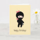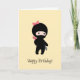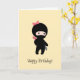 Niedliche Cartoon Ninja Mädchen ist ganz in Schwarz gekleidet, aber für einen rosa Bogen auf ihrer Kopfmaske. Traditionelles japanisches Schwert Katana kann man an ihrer Schulter sehen, es ist Griff auch rosa gefärbt.