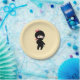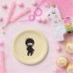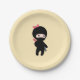Niedliche Cartoon Ninja Mädchen ist ganz in Schwarz gekleidet, aber für einen rosa Bogen auf ihrer Kopfmaske. Traditionelles japanisches Schwert Katana kann man an ihrer Schulter sehen, es ist Griff auch rosa gefärbt.