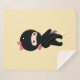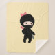 Niedliche Cartoon Ninja Mädchen ist ganz in Schwarz gekleidet, aber für einen rosa Bogen auf ihrer Kopfmaske. Traditionelles japanisches Schwert Katana kann man an ihrer Schulter sehen, es ist Griff auch rosa gefärbt.