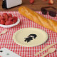 Tiny Ninja Holding Drewing Star auf Gelb Pappteller