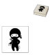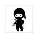 Niedlicher Cartoon Ninja in schwarz gekleidet hält einen Wurfstern. Traditionelles japanisches Schwert Katana kann man an seiner Schulter sehen.