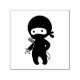 Niedlicher Cartoon Ninja in schwarz gekleidet hält einen Wurfstern. Traditionelles japanisches Schwert Katana kann man an seiner Schulter sehen.