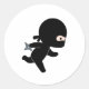Niedlicher Cartoon Ninja in schwarz gekleidet läuft während Sie einen Wurfstern halten.