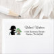 Eine hübsche kleine, schwarz gekleidete Ninja sitzt in der Nähe eines Pflanzers quer und gießt einen kleinen Bonsai-Baum. Das japanische Katana-Schwert ist ihm über den Rücken gefesselt.
