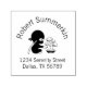 Eine hübsche kleine, schwarz gekleidete Ninja sitzt in der Nähe eines Pflanzers quer und gießt einen kleinen Bonsai-Baum. Das japanische Katana-Schwert ist ihm über den Rücken gefesselt. Passen Sie Ihren eigenen Namen und Ihre eigene Adresse an.