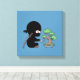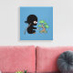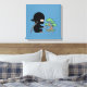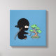Tiny Ninja Watering Bonsai Tree on Blue Leinwanddruck