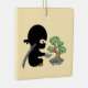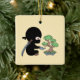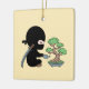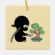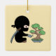 Tiny Ninja Watering Bonsai Tree on Yellow Keramikornament