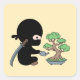 Tiny Ninja Watering Bonsai Tree on Yellow Quadratischer Aufkleber