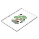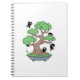 Einfache Abbildung eines japanischen Topfbonsai-Baumes in einem flachen Tablett. Eine Gruppe winziger Ninjas machte diesen Baum zu ihrer Basis. Mehrere Ninjas verstecken sich hinter dem Blätterdach. Eine ist von einem Seil an einen Ast gebunden, eine andere bewegt sich über dem Baum, der an einen Drachen befestigt ist.