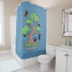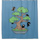 Tiny Ninjas in Bonsai Tree on Blue Duschvorhang