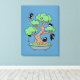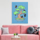 Tiny Ninjas in Bonsai Tree on Blue Leinwanddruck