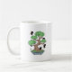 Einfache Abbildung eines japanischen Topfbonsai-Baumes in einem flachen Tablett. Eine Gruppe winziger Ninjas machte diesen Baum zu ihrer Basis. Mehrere Ninjas verstecken sich hinter dem Blätterdach. Eine ist von einem Seil an einen Ast gebunden, eine andere bewegt sich über dem Baum, der an einen Drachen befestigt ist.