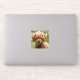 Diese Aufkleber schmückt ein super spezielles Welpengesicht. Das ist ein 6 Wochen altes rotes Spielzeug. Sein Name ist Rudy.