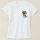 A playful cartoon T‑rex bursts to life against a deep black background, drawn with oversized features and an expressive wide‑open mouth full of rounded teeth. Its big glossy eye and short, raised arms give the dinosaur a cute, energetic personality rather than a fierce one. Soft green tones, subtle spots, and smooth shading add depth, while bold outlines keep the illustration clean and lively. The overall style blends prehistoric charm with modern kawaii cartoon appeal.