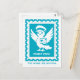 Our little postbird and mascot is featured on this teal postage stamp design with her name "Penny Post", wearing a postman's hat and holding a postcard with a heart. "Tiny Wings, Big Journeys" is written as a cute message at the bottom of the postcard! Great for kids - just adorable!