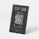 Einfaches modernes Tipp-Glas schwarz Tischplatte für Ihr Unternehmen mit einem Venmo QR-Code für Kunden zu scannen nach Zahlungen. Fügen Sie Ihren QR-Code, Ihren Firmennamen, Ihre Telefonnummer und Ihre Straßenanschrift in einfacher weißer Typografie hinzu.